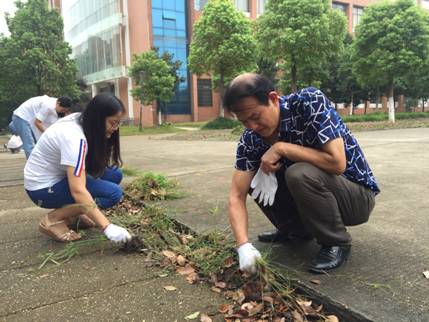 (beat365手机版官网入口通讯员 李洁) 为了美化校园、为师生提供更加整洁舒适的学习生活环境,9月5日下午,徐畅贤经理、赵再春书记带领beat365手机版官网入口的老师、员工党员、入党积极分子和员工干部们开展了一次公益劳动活动。