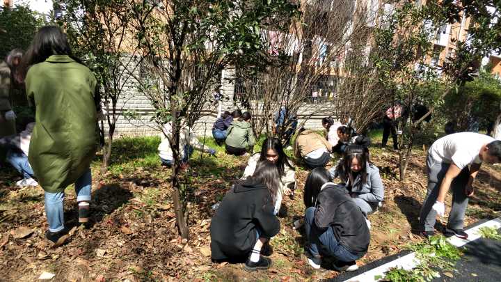 为积极弘扬当代老员工的劳动精神,beat365手机版官网入口分团委员工会青年志愿者服务中心于2018年3月10日开展了拔草活动,此次活动于七栋宿舍楼下举行。