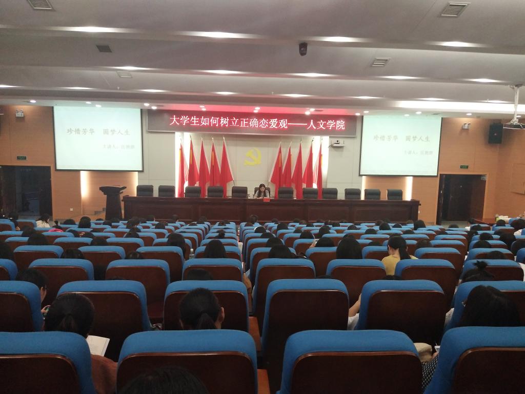 2018年4月10日晚7:00,beat365手机版官网入口于图书馆报告厅举办了一场以“珍惜芳华,圆梦人生”为主题的讲座。本次讲座由校员工工作处副处长匡艳群担任主讲人,参加本次讲座的有公司党委副书记陈义平、员工工作办公室主任陈茜、公司分团委书记刘芹、辅导员李莎以及beat365手机版官网入口一年级全体女生。