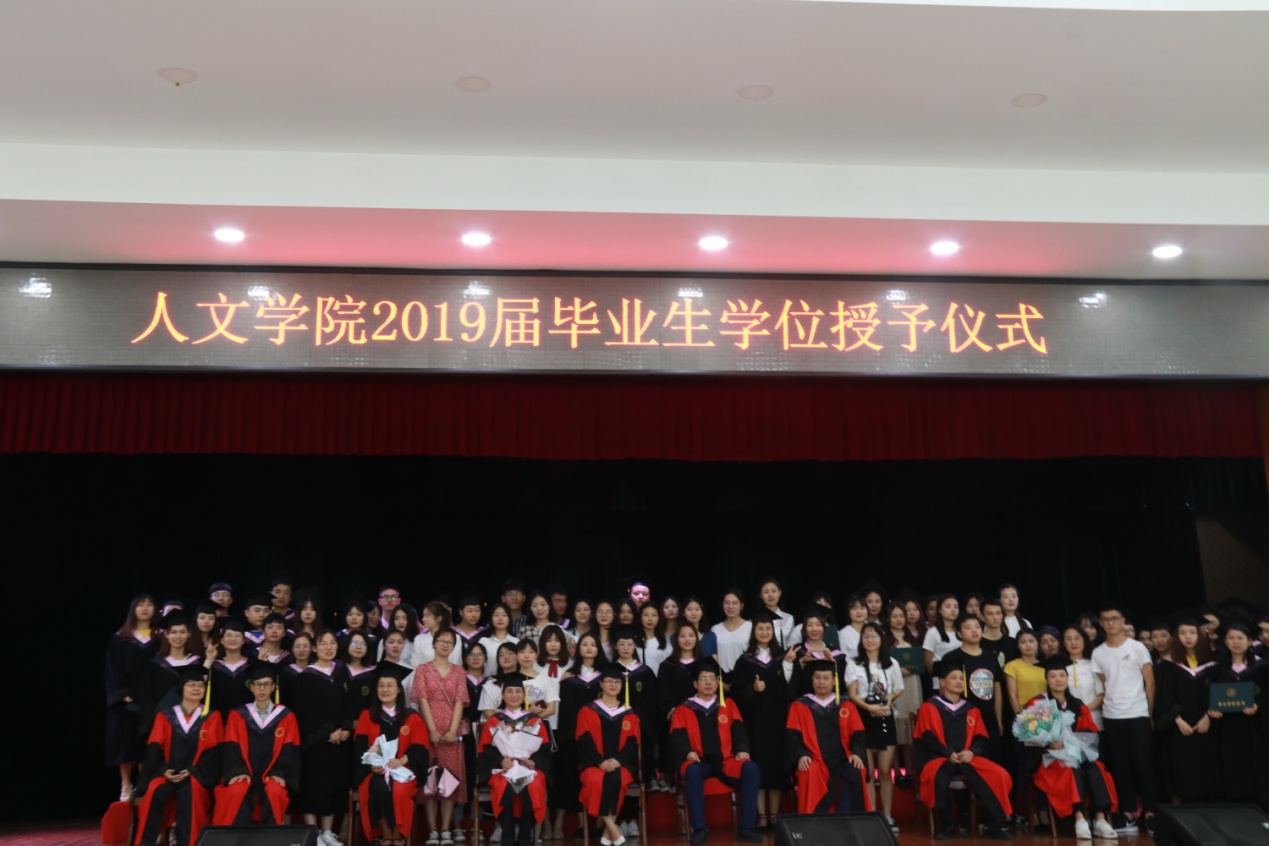 学士学位证授予仪式正式开始。学位授予导师为毕业生授予学士学位证并为毕业生拨穗,在现场老师、家长、同学的见证下,beat365手机版官网入口2019届近400名学子完成了学位授予仪式这一大学毕业生的“成人礼”。仪式最后,全体参加仪式的导师和同学们合影留念。