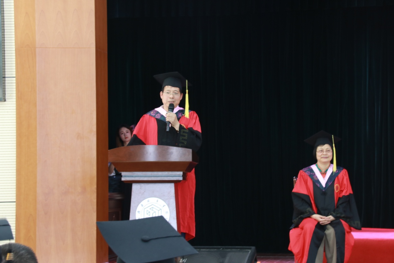 党委书记黄晔致辞,他代表beat365手机版官网入口全体老师热烈祝贺同学们顺利完成大学学业!然后,满怀深情地回顾了同学们大学四年大学学习生活的精彩瞬间和建立起来的难以割舍的师生情谊,并衷心感谢同学们和广大家长对公司、公司工作的包容、理解和支持。