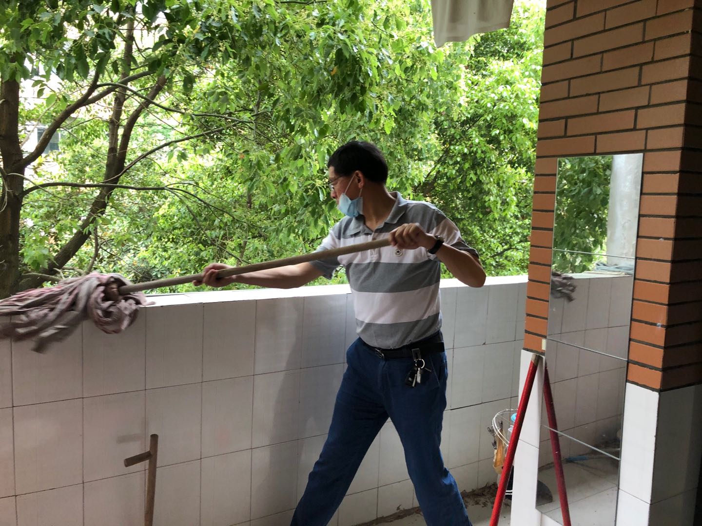 参加活动的党员老师分成3组,深入各楼栋,为毕业班每一间寝室开窗通风。他们发扬了不怕苦不怕累的精神,仔细打扫卫生,不放过任何一个死角;将已经在宿舍放置了好几个月的被褥拿到阳台进行晾晒。下午没课的一批老师又主动承担起收被子、关门窗的任务。通过他们的劳动,给即将在五一收假后返校的毕业生提供干净温暖的宿舍环境。
