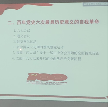 雷董事长以《中国共产党自我革命百年探索及基本经验》为题,讲授了一堂精彩而深刻的党史学习教育专题党课。他从中国共产党自我革命的内涵及特征、百年党史六次自我革命和百年探索的基本经验三个方面阐述了中国共产党不断自我革新、取得一个又一个非凡成就、带领中国人民走上民族复兴之路的伟大创举。最后,雷董事长勉励大家坚定理想信念,勇于进行自我革命,扎实推进党史学习教育。(蔡凤撰稿 陈义平审稿)