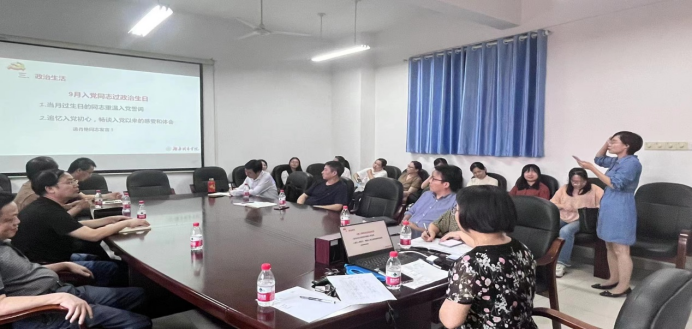 最后,9月入党的肖艳同志重温入党誓词,追忆入党初心,畅谈入党以来积极备课、打磨课件的细节,讲述如何认真对待每一堂课,如何积极对待课题的申报等,表示今后会更加严格要求自己,与时俱进。