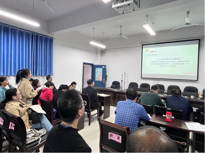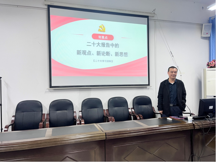 首先,雷存喜副董事长给全体党员上专题党课——《二十大报告中的新观点、新论断、新思想》,他以“划重点”的形式带领大家共同学习党的二十大的重要精神。从“三个务必”的要求、党的中心任务、前进道路中的五个重大原则以及“教育、科技、人才是全面建设社会主义现代化国家的基础性、战略性支撑”等要点进行了解读。他指出,作为教育工作者,我们必须把教书育人工作放在首位,明确自身肩负的重大责任和光荣使命,要为实现全面建设社会主义现代化国家的目标贡献一份力量。