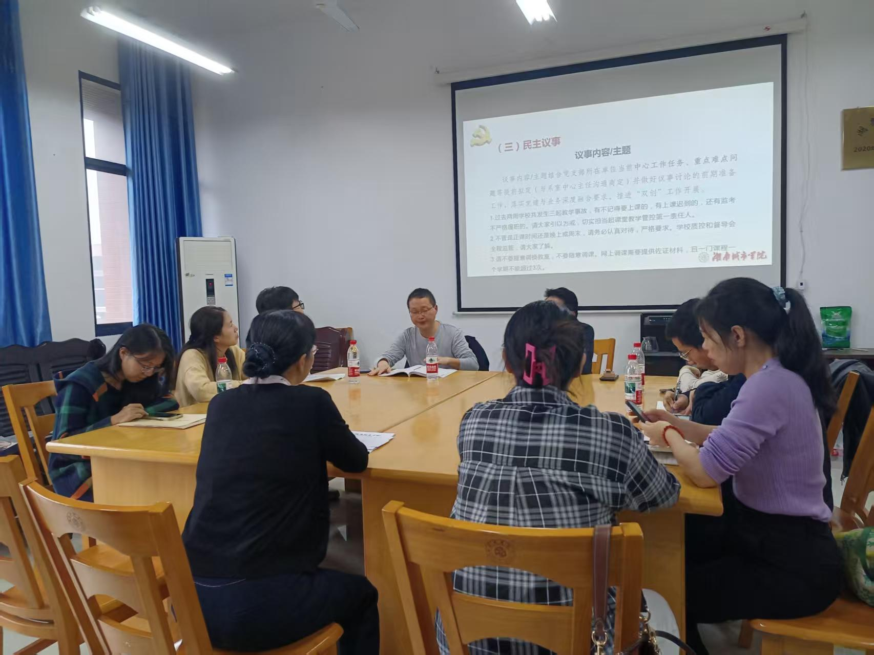 最后,全体党员围绕过去两周发生的三起教学事故开展了民主议事与集中讨论。大家一致认为,要以此次事件为警示,进一步强化师德师风建设,严格执行教学管理制度,落实“以员工为中心”的教育理念,进一步加强教师教学能力培训,切实保障课堂教学质量,维护高校教师队伍的良好形象和育人初心。