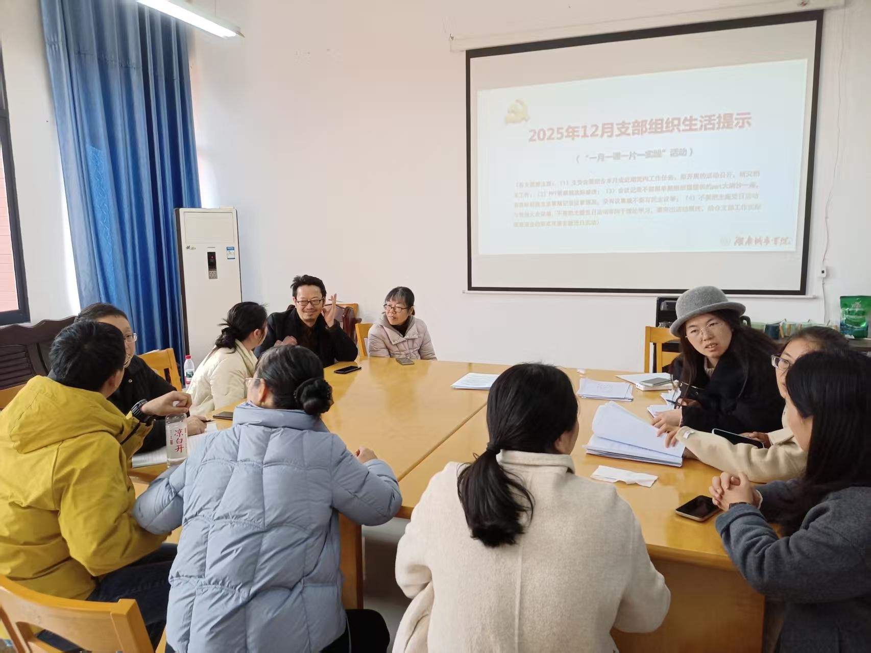 随后,支部党员学习党的二十届四中全会精神,并开展“一月一课一片一实践”活动。杨爱华在学习和活动后提到:“作为网络与新媒体专业的一线教师,我们不仅要传授技能,更要涵养员工的家国情怀。将党的二十届四中全会关于健全网络综合治理体系的要求融入教学与实践,是落实立德树人根本任务的具体体现。”
