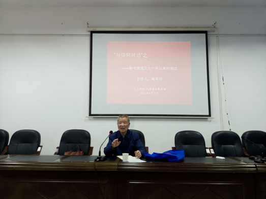 首先,杨英明老师结合自身经历全面介绍了中国七十年来艰辛的发展史。随后,杨英明老师从中国七十年来的科技发展入手,概括了中国在科技方面的进步。最后,杨英明老师提醒同学们提高党史学习的重视度,深刻认识党史教育的意义,并且坚定跟党走的决心。