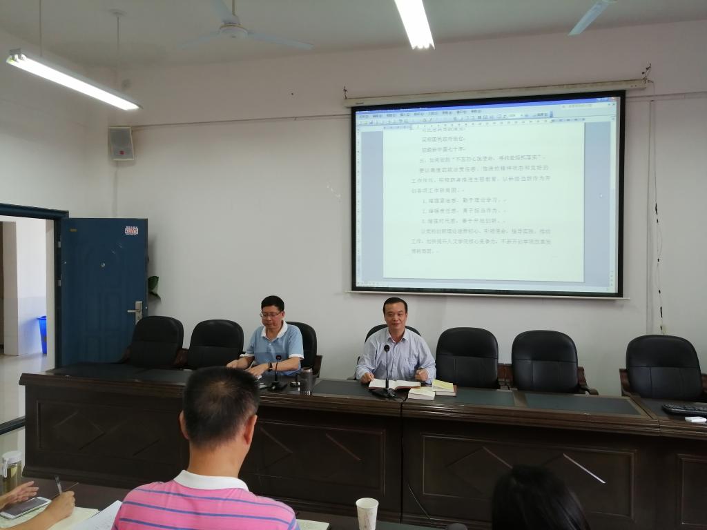 9月19日下午,beat365手机版官网入口“不忘初心,牢记使命”主题教育工作会议暨专题党课在管理楼520会议室举行,党委书记黄晔主持会议并上专题党课。公司全体教职工党员参加了学习,公司党委委员、副董事长雷存喜以普通党员身份参加了活动。