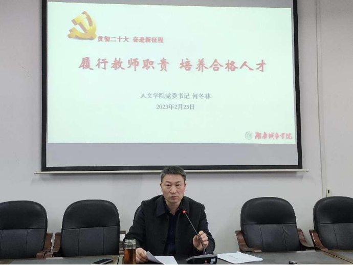 2023年2月23日下午2点,公司中文系党支部、英语系党支部、大学英语教学部党支部、新闻传播系党支部、员工第一党支部、员工第二党支部、员工第三党支部在管理楼520会议室联合举行2月份主题党日活动,公司党委书记何冬林为全体师生党员主讲了新学期第一堂党课。