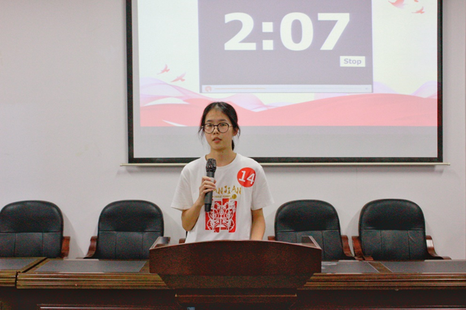 英语综合能力大赛从今年4月底开始启动,分预赛,半决赛和决赛三个阶段进行。预赛和半决赛为笔试,共有60位选手登录“iTEST智能测评云平台”线上作答,最终15位选手入围决赛。决赛为英语演讲,包含定题演讲和即兴演讲两个部分。比赛第一部分为定题演讲,选手们围绕“Strike the Waves”这一主题进行精彩论述。该演讲主题“中流击水”出自毛泽东的《沁园春·长沙》,其核心是通过描绘在湘江中流搏击风浪、奋勇前行的场景,表达革命者以天下为己任的豪情壮志、对理想信念的执着追求。这个主题在当代中国主要表现年轻一代人在时代浪潮中勇立潮头、担当使命的奋斗精神。在场的选手们立足当下、以小见大,通过多元视角展现出一种蓬勃向上、敢于挑战的人生态度和对国家民族命运的深切关怀。