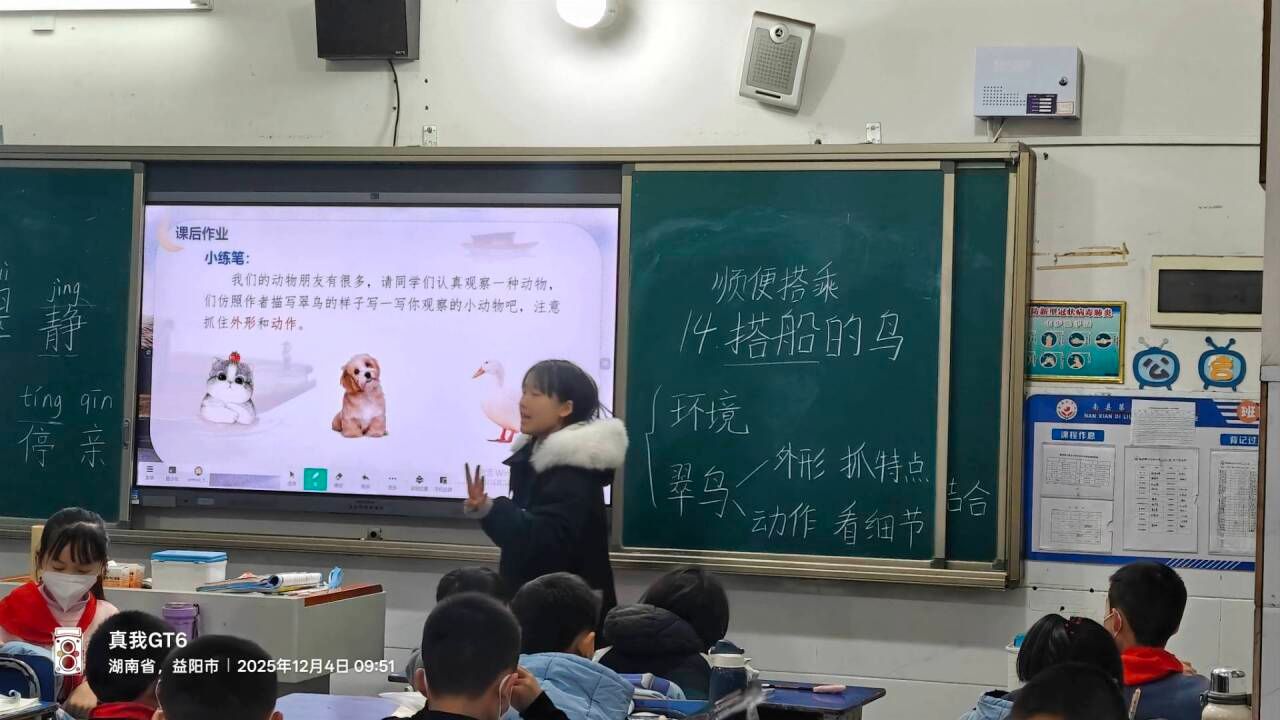 “擘波得潜鱼 ,一点翠光去。”课堂是实习成效的试金石。随堂听课环节,2205505班余瑞涵同学以三年级语文上册《搭船的鸟》为题,呈现了一堂富有朝气的公开课。课堂氛围热烈,师生积极互动,尽显生机活力。