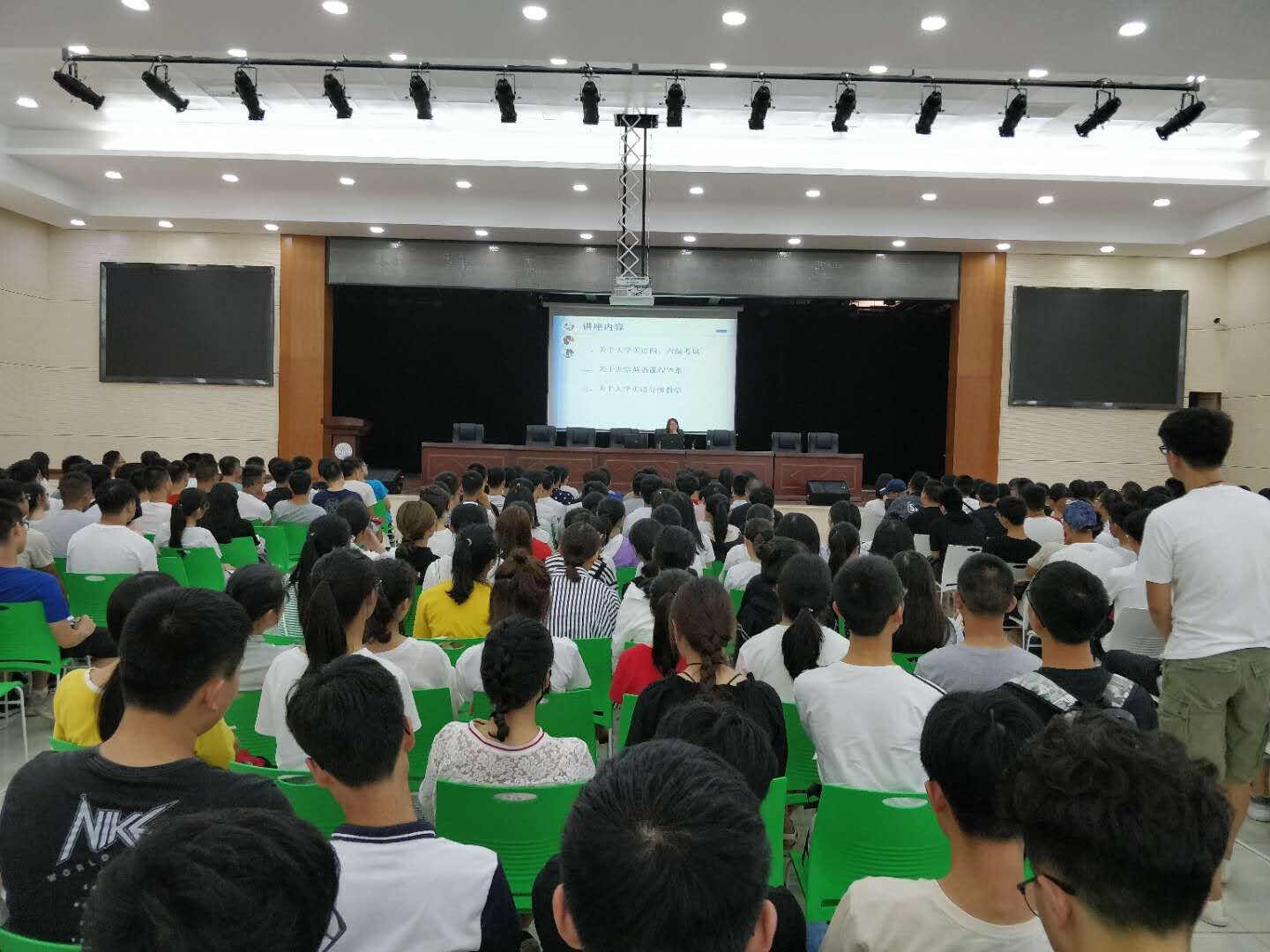 9月11日-14日,大学英语教学部刘萍萍、藏永红和尹穗琼三位老师分别在员工活动中心、建规楼报告厅、信电楼视频会议室、图书馆报告厅、一教学楼309教室等地为全校2018级非音、体、美专业新生进行了9场以“大学英语分级教学、大学英语四六级考试”为主题的宣传讲座。讲座共三个部分,第一部分介绍大学英语四、六级考试要求、考试内容、题型特点,并从“精神需求、社会认可度、求职需要、考研留学需要”等四方面对大学英语四、六级考试的重要性进行了重点宣讲。第二部分对大学英语教学目标、课程体系、课程内容及学分分配进行了宣讲。第三部分重点介绍“2018级员工大学英语分级教学改革方案”和员工自主选择任课老师的具体流程。