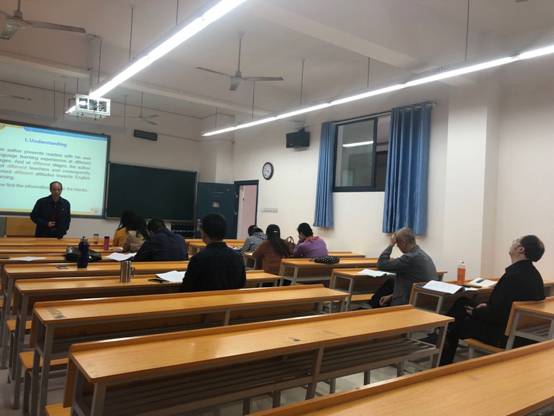 本学期自开学以来,第二教研室全体教师利用教研活动和节假日时间进行了四次教学能力提升活动。活动采取一名教师说课或授课,其余教师听课评课的形式。在教学结构,内容,课堂组织以及课件等各个方面进行探讨和互相学习。所有老师都表示受益良多。期间,院领导徐畅贤书记和周瑞英经理多次亲临指导发表讲话,强调教师应不断督促自己提升教学技能才能与时俱进达到好的教学效果。