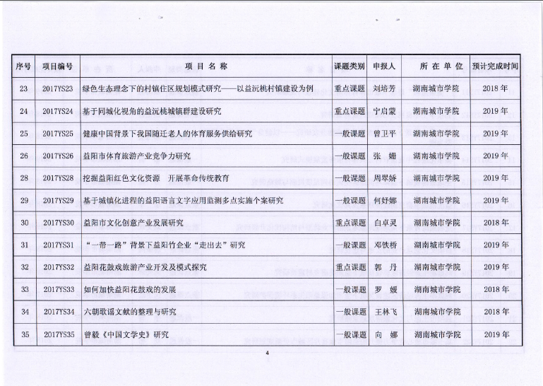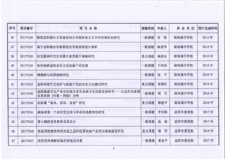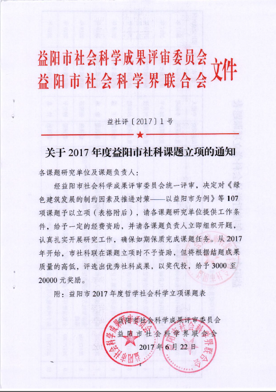 2017年度益阳市社科课题立项通知