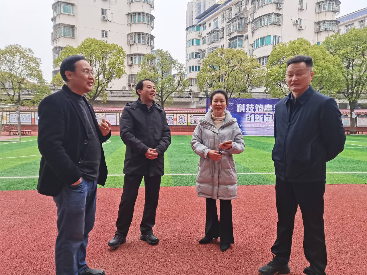 在南县第三完全小学,彭海华一行与南县教育工委委员、总督学刘洪、南县第三完全小学董事长甘灿等看望走访实习生,并组织在南县各校实习的员工座谈,与实习单位进行了深入交流。
