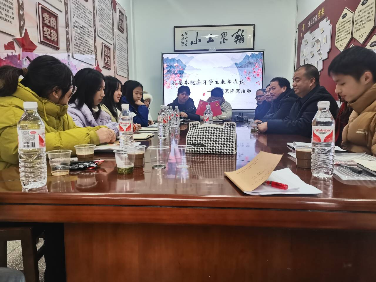 课堂教学观摩环节,2105503班涂涵同学以五年级语文上册《忆读书》为教学内容,在实习班级举行现场公开课汇报。课后,参加听课的老师与实习生各抒己见,组织了细致的评课议课活动。既肯定了涂涵在课堂教学中饱满的教学热情和扎实的专业素养;同时也指出了存在的不足,在课程思政、教学重点、员工参与、课堂评价、延伸阅读等方面尚有较大提升空间。部分发言人还提到自己亲历教学的经验,为大家提供了有益的参考与借鉴。