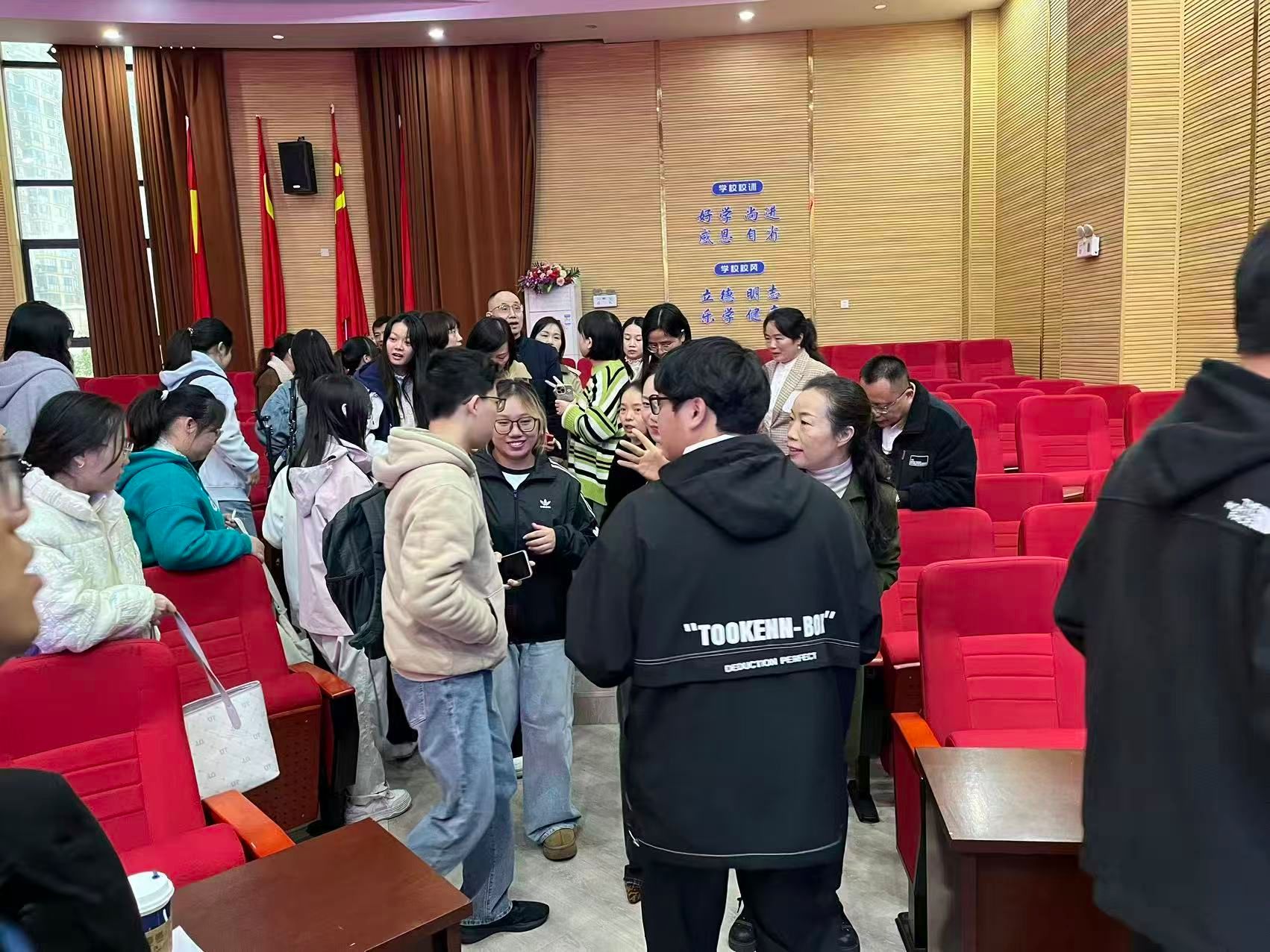 梓山湖公司教导主任叶浩致辞,对中文系实习队伍的到来表示热烈欢迎,并对实习的具体安排和注意事项进行强调。希望实习生们能够调整作息,认真听从指导老师的安排,积极配合指导老师的各项工作。随即梓山湖公司指导教师与实习生进行见面与对接,直接进入课堂开展实训。