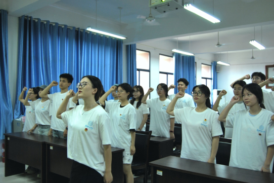 图5为感光支教团蒋凯玲带领支教团全体成员宣誓