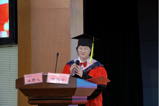 “在文学经典中体味人性光辉,在历史长卷中洞察兴衰规律”,傅建安经理在题为《承人文薪火,赴青云之约》的讲话中,深情回顾了学子们在人文殿堂的成长历程。她将人文教育比作“永不熄灭的薪火”,强调其核心是批判性思考能力、同理心情怀与文化坚守定力。在AI技术快速发展的当下,她特别指出:“越要守护人类独有的情感温度与创造性思维,这是人文精神不可替代的价值。”现场师生共同回味了学子们在图书馆研读经典、在志愿服务中传递温暖的青春印记。经理特别强调,人文素养赋予毕业生四大“利器”:穿透迷雾的思想力量、跨文化沟通的智慧、理解人性的情感深度,以及立足传统的文化自信。这些娓娓道来的话语和嘱托成为毕业典礼上最触动人心的精神共鸣。