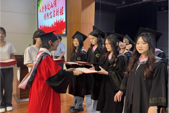 随后举行的学位授予仪式上,导师们逐一为毕业生拨正流苏、授予学位证书,庄重的仪式感让现场不少师生眼眶湿润。据了解,本届毕业生涵盖汉语言文学、网络与新媒体、英语等多个专业,即将奔赴教育、文化、传媒等各领域岗位。