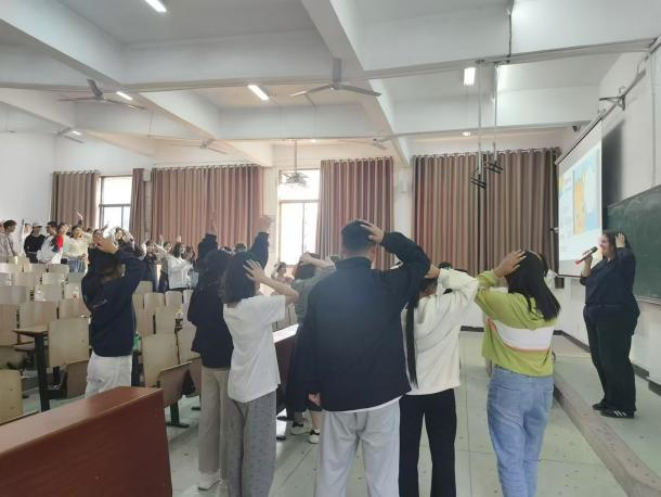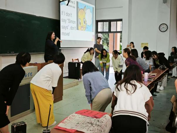由外教主持Simon says这个英语小游戏,其趣味性十足,互动性强,同学们都投入了其中,一场游戏下来,整个活动氛围都变得十分的活跃。