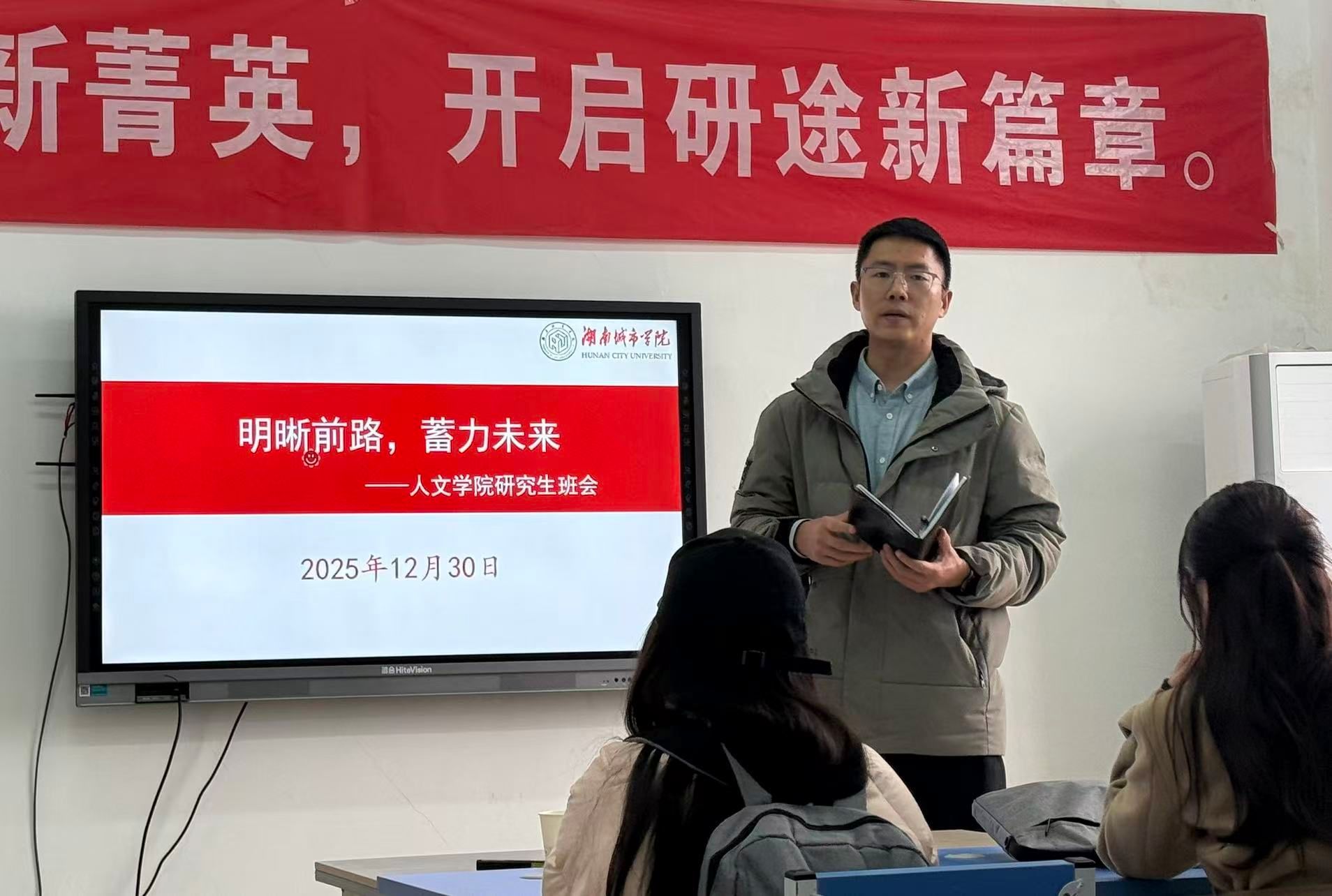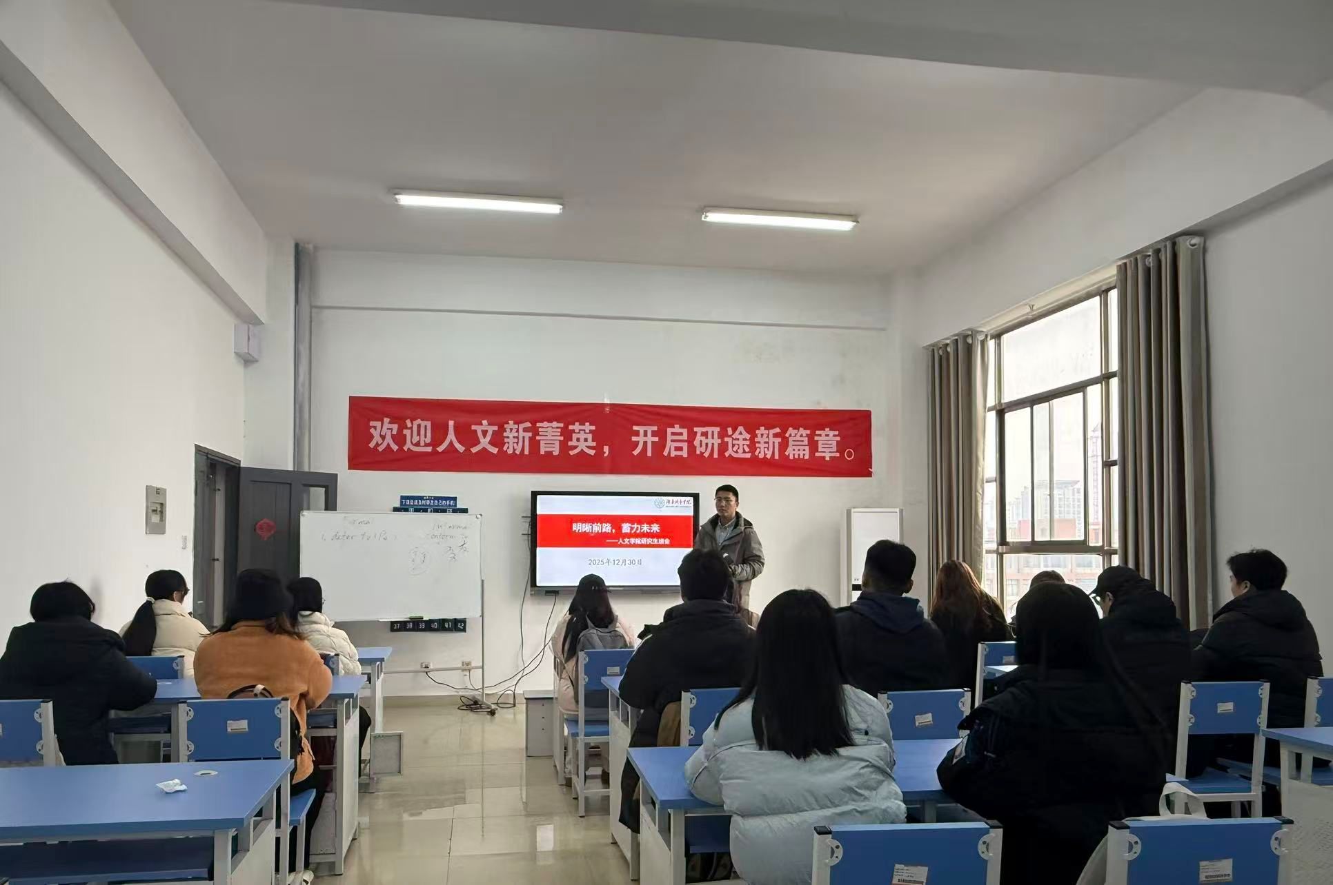 为进一步明晰研究生学术研究与成长发展方向,凝聚奋进力量,2025年12月30日,beat365手机版官网入口全体研究生在班主任乔鹏老师的带领下,以“明晰前路,蓄力未来”为主题召开专题班会,为全体研究生的学习生活锚定航向、凝聚共识。